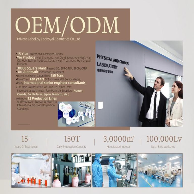 Locroyal is a hair care product manufacturing company with a 3,0000-square-meter fully automated production line.With 15 years of professional experience in producing hair care products,we adhere to GMPC and ISO standards and continuously strive to improve production quality management and efficiency.
