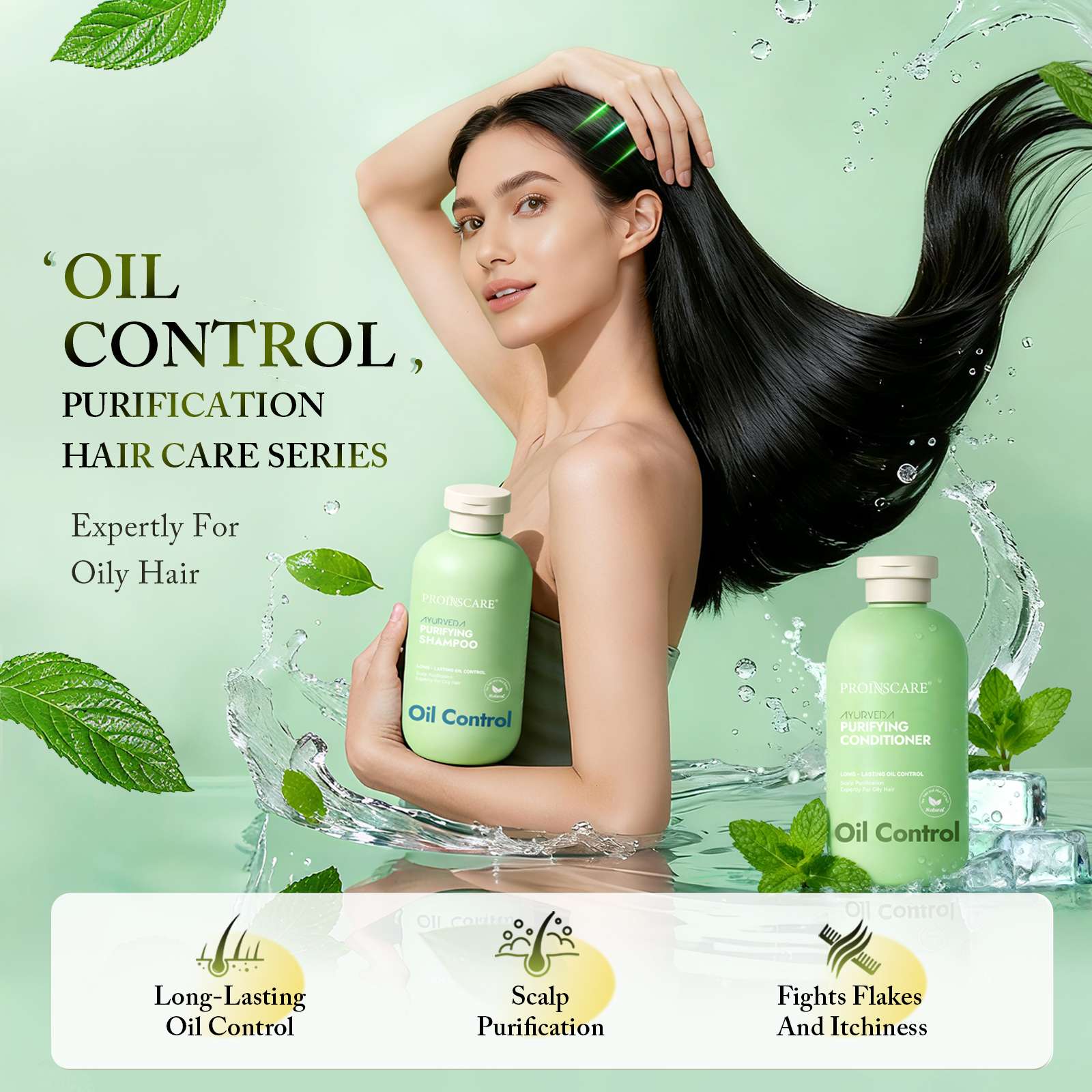 Oil Control Purification Shampoo – Formulated for hot and humid climates, this oil-control shampoo is enriched with tea tree, peppermint, and rosemary oils to deeply cleanse the scalp, control excess sebum. With salicylic acid and Zinc PCA, it helps unclog pores, reduce dandruff, and purify the scalp. Infused with hydrolyzed keratin and panthenol to strengthen hair and maintain hydration. Ideal for daily use in oily-prone or tropical environments.