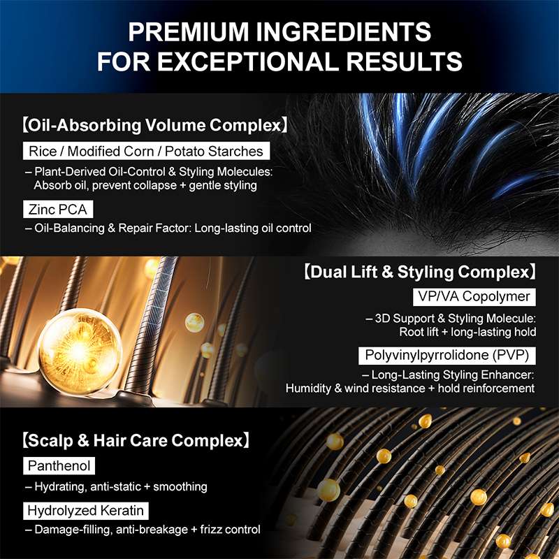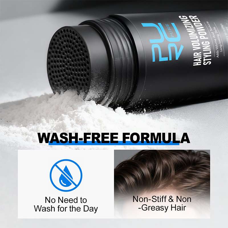 Hair Volume Styling PowderIt allows you to change your hairstyle anytime and anywhere, with immediate results. Compared with hair oil and hair clay, it is more refreshing and non-sticky. When using, just sprinkle it on and scrunch your hair—you’ll instantly get a perfect hairstyle that looks more authentic than those created with hair oil or hair clay.