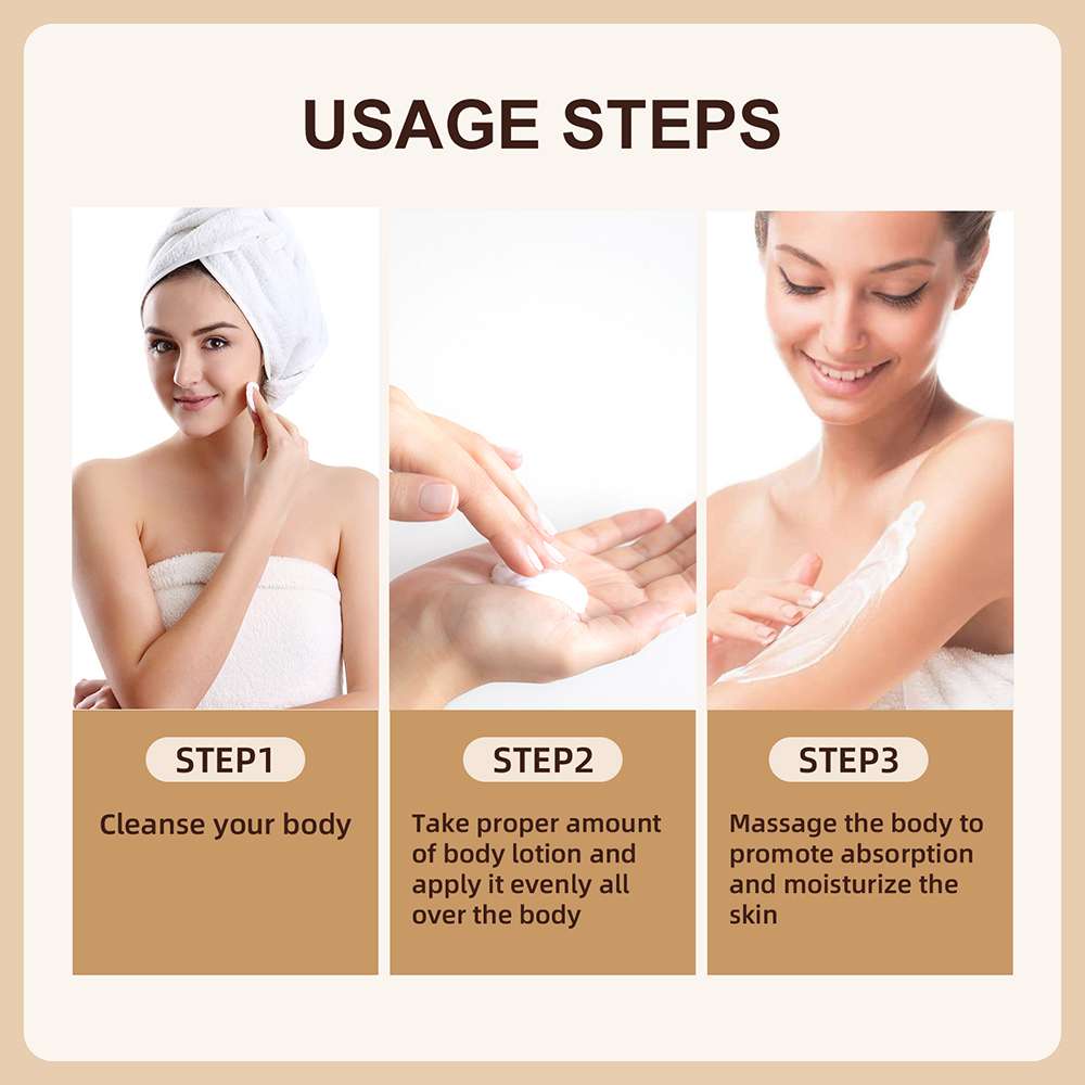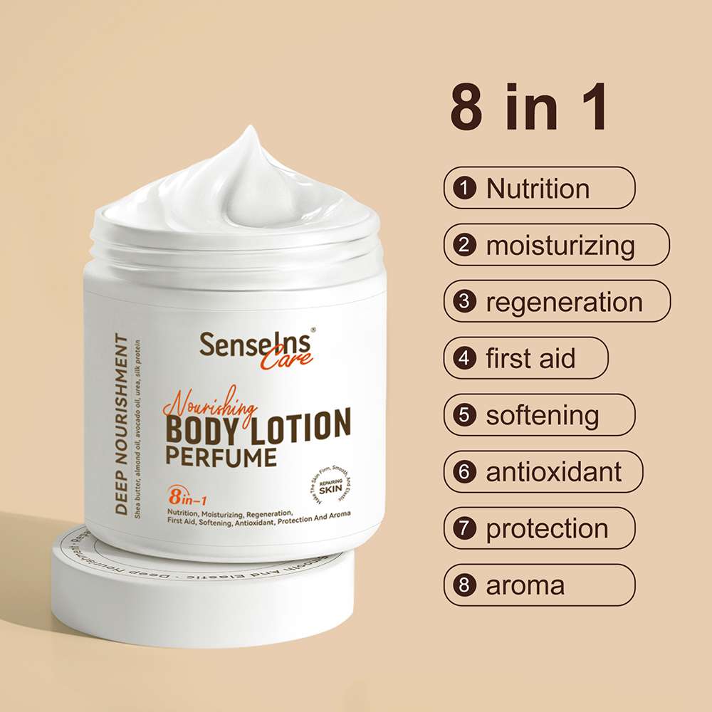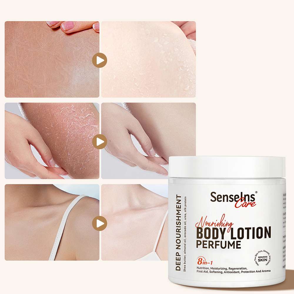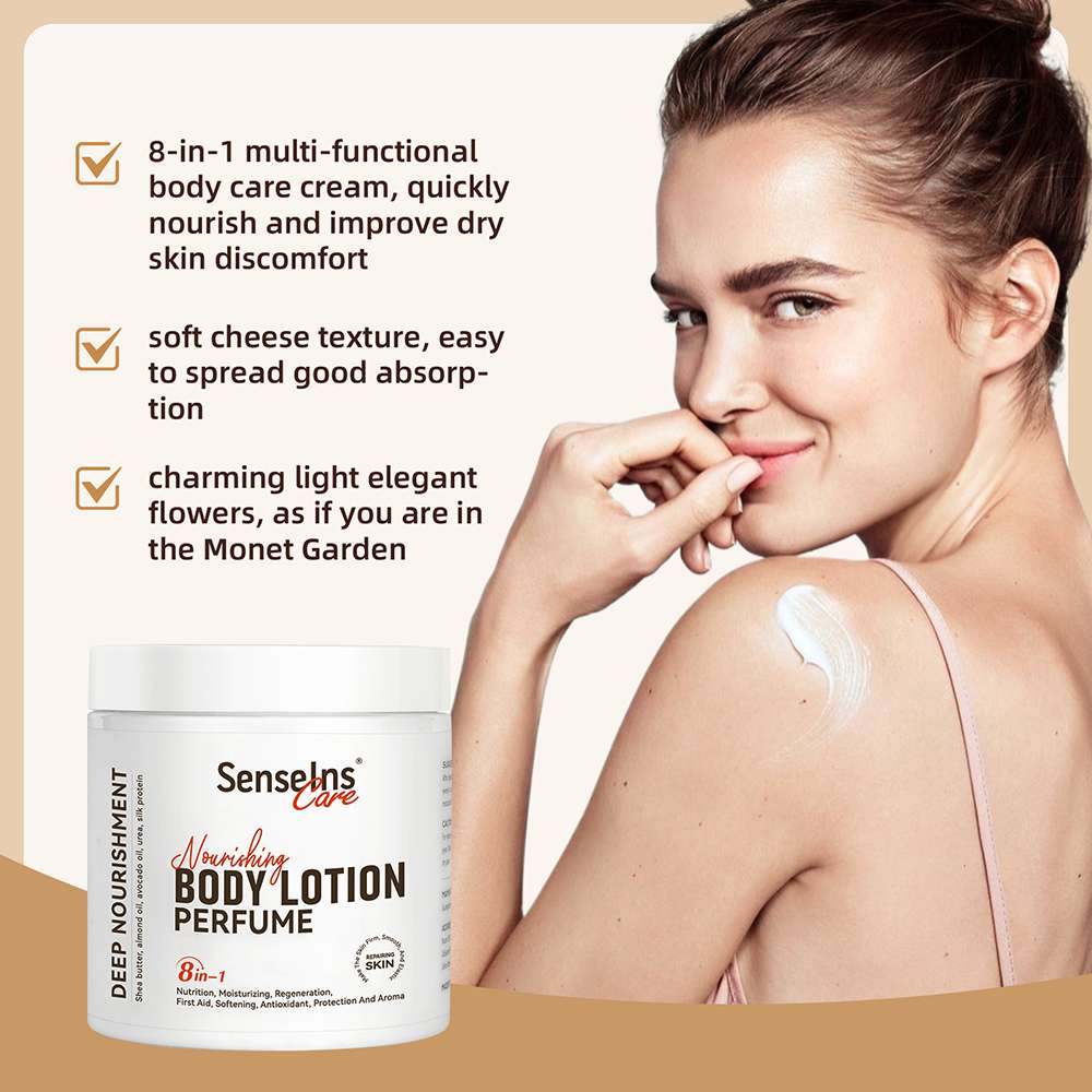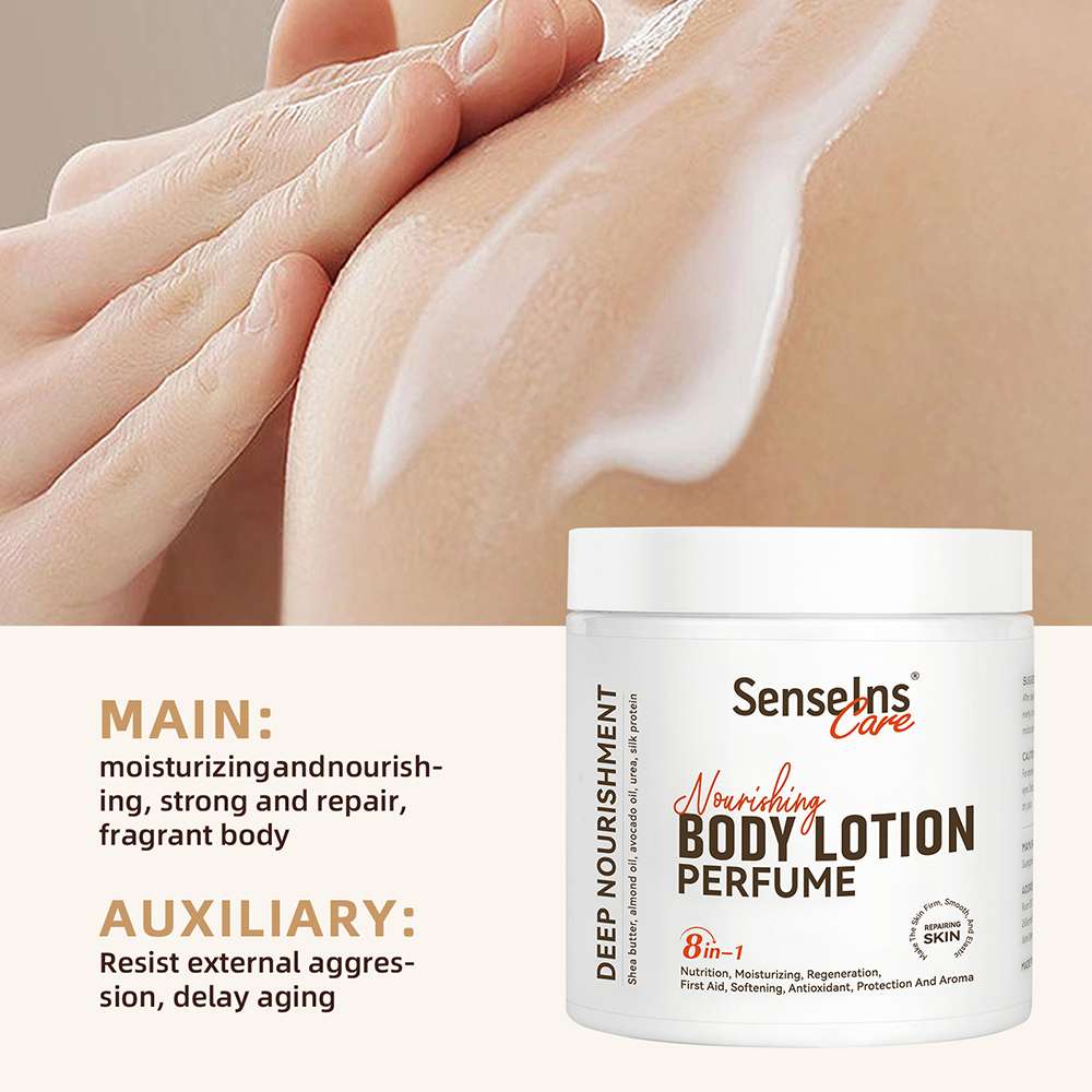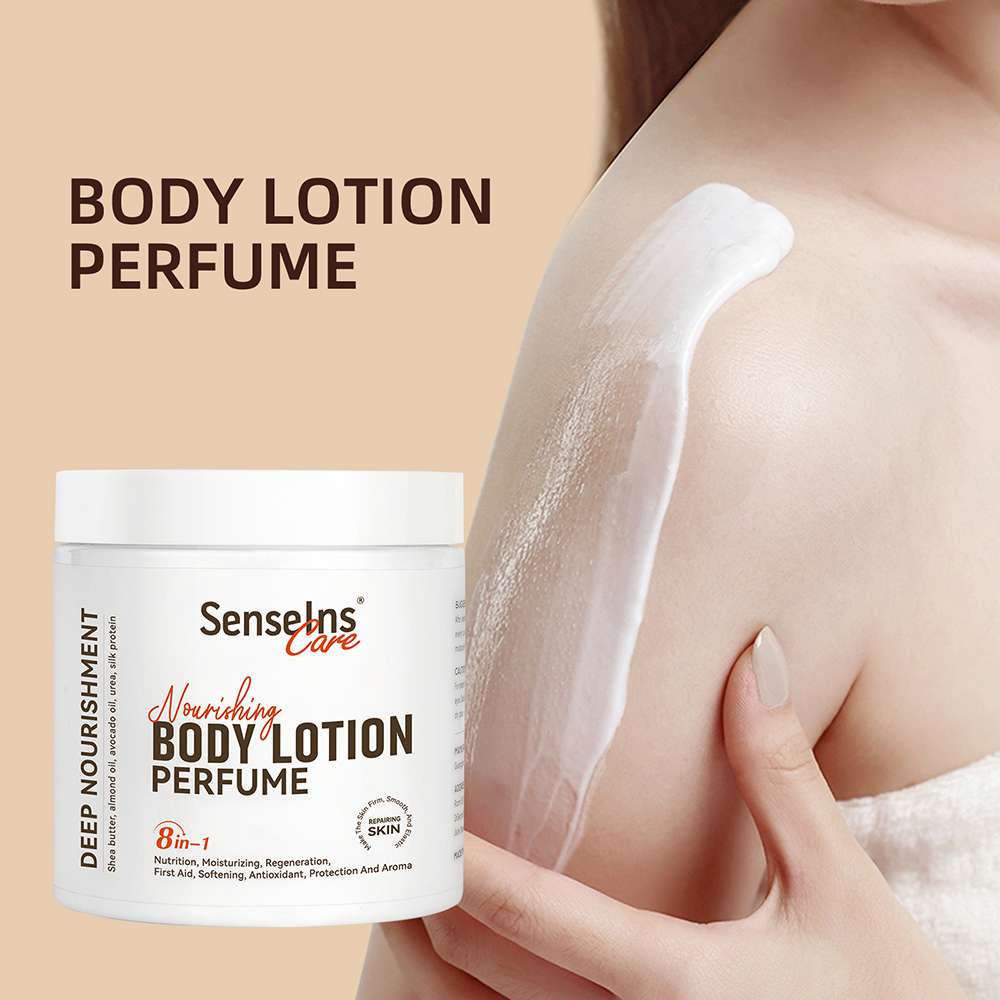 Nourishing Perfume Body Lotion: Enriched with ingredients like shea butter, almond, urea, and silk collagen, this product deeply nourishes the skin, repairs cells, strengthens the skin barrier, and slows down the aging process. It revitalizes the skin while leaving a long-lasting, unique fragrance.