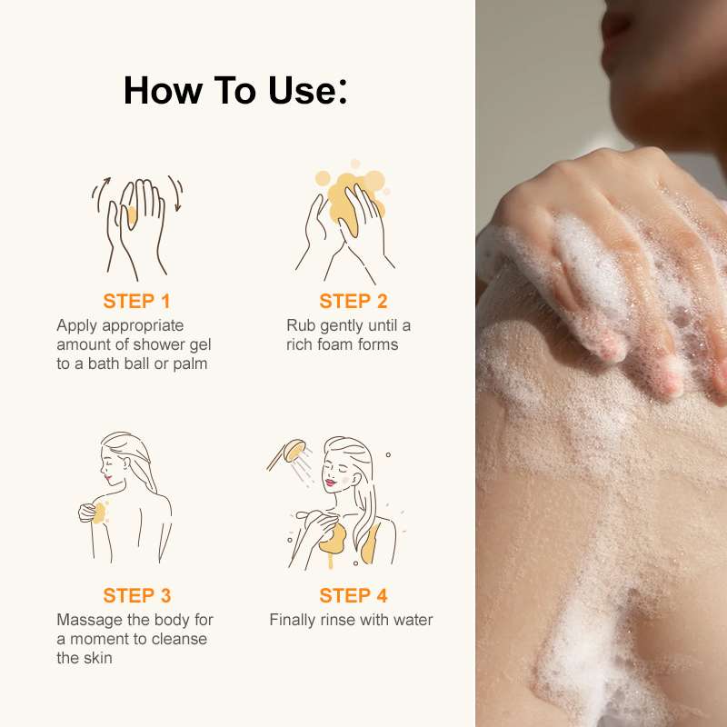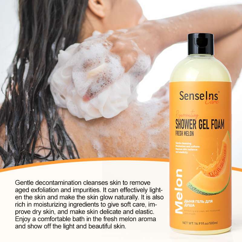 Fresh Melon Body Wash Shower Gel: Cleanses the skin in a gentle way, removing old cuticles and impurities. It can effectively brighten the skin tone and make the skin glow with natural radiance. It is also rich in moisturizing ingredients, giving soft care, improving dry skin, and making the skin delicate and elastic. In the fresh melon fragrance, enjoy a comfortable bathing time and show your bright and beautiful skin.